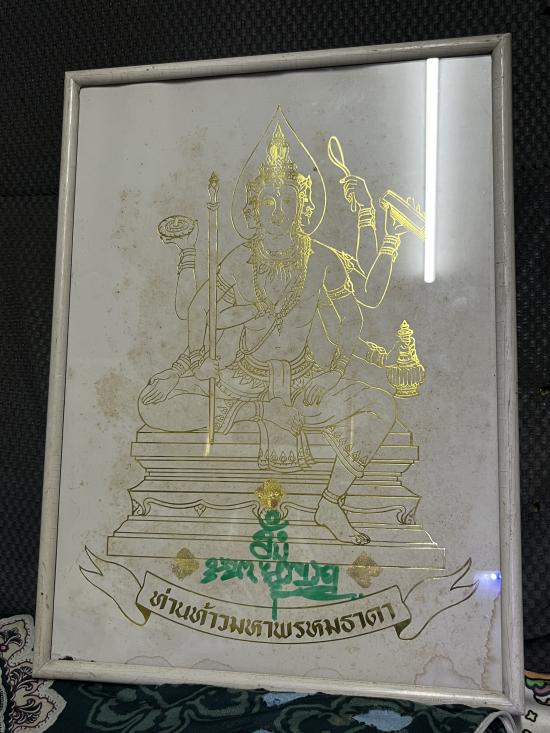 ขนาดรวมกรอบ11x17นิ้ว ภาพท้าวพระพรหมธาดา ลายเซ็นทอง อาจารย์วินิจ ลุปซ่า จารหมึกเขียวปิดทอง สภาพสวย หายากครับ สายพระพรหมวัดดอน อันโด่งดัง