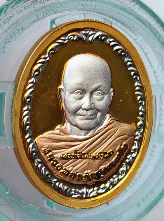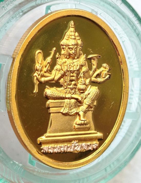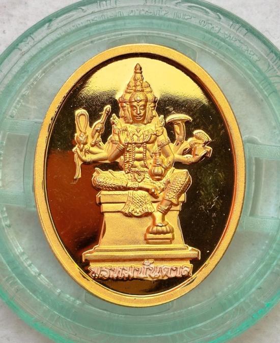 เหรียญพรหมบันดาล เนื้อสามกษัตริย์ขัดเงา หลวงพ่อจรัญ วัดอัมพวัน ปี2556 กล่องเดิม