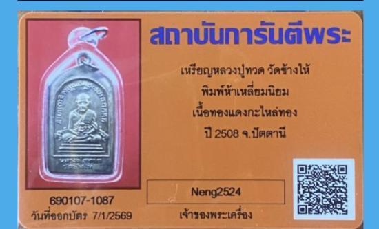Rare items สวยๆๆ เหรียญห้าเหลี่ยมเรียนดี หลวงปู่ทวด วัดช้างให้ ปี 2508 พิมพ์นิยม ทองแดงกะไหล่ทอง + บัตร g pra ครับ