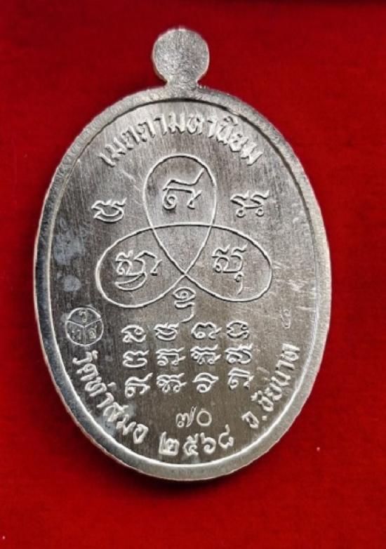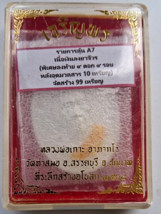 เหรียญเจริญพรบน หลวงพ่อเกาะ อาภากโร ที่ระลึกสร้างอุโบสถวัดท่าสมอ จ.ชัยนาท (ศิษย์หลวงพ่อกวย) เนื้อเงิน ลงยา จีวร หลังยันต์ หมายเลข ๗๐ พร้อมกล่อง