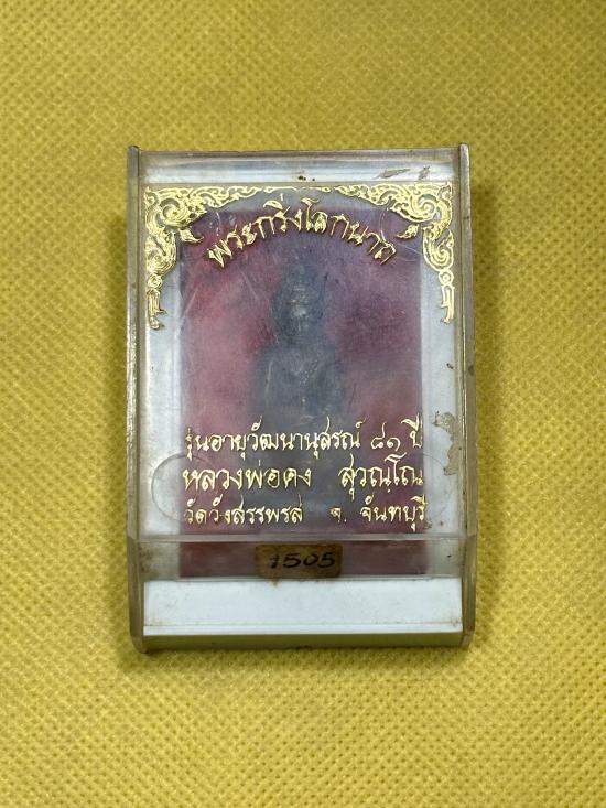 ชื่อพระเครื่อง พระกริ่งโลกนาถ รุ่นอายุวัฒนานุสรณ์ 81 ปี หลวงพ่อคง สุวณฺโณ วัดวังสรรพรส จ.จันทบุรี เนื้อนวะโลหะก้นทองแดง หมายเลข 1505 พร้อมกล่อง