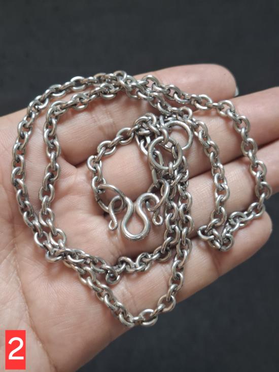 วัดใจ No.2 สร้อยเลสเก่า ตราลูกศร ลายโซ่ ห้อยพระได้3องค์ ยาว2ฟุตครับ