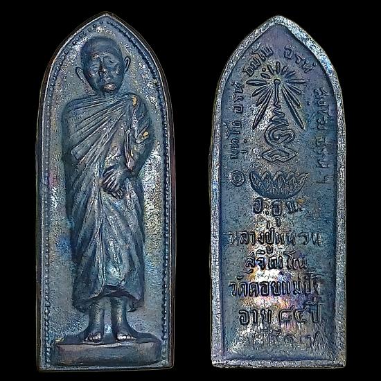 (2)วัดใจเหรียญหลวงปู่แหวน พิมพ์ยืน หลังรางปืน เนื้อทองแดงรมดำเดิมๆ ปี 2517 จ.เชียงใหม่ |
