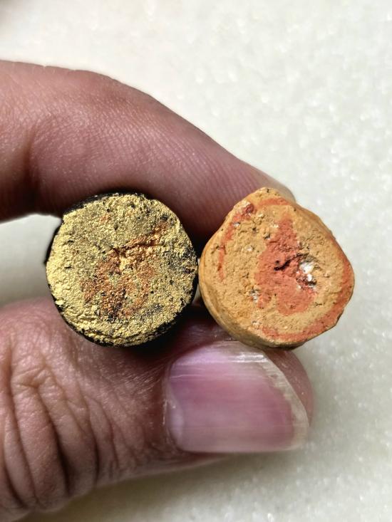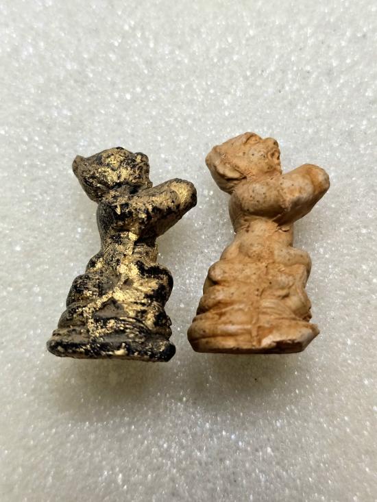 เคาะเดียวแดง มัจฉานุ เนื้อผงพรายกุมารสีแดงและสีดำ ก้นมีปั้มตรายางจารสีแดง รุ่นพระกริ่งชินบัญชรมหาอุปคุต มูลนิธิหลวงปู่ทิม |