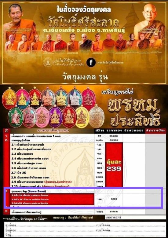 จัดสร้าง 168 ชุด (ยังไม่แกะซีล) ราคาจอง 1200 บาท
