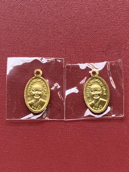 เคาะเดียวแดง เม็ดแตง 2องค์หลวงปู่ทวด รุ่น102ปีอาจารย์ทิม เนื้อชุบทองลงยาสีแดง |