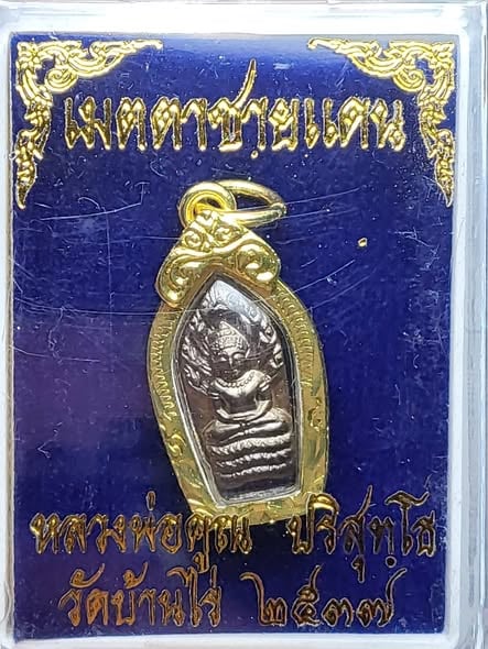 ใบมะขาม หลวงพ่อคูณวัดบ้านไร่ ปี 37 รุ่นเมตตาชายแดน เลี่ยมโลหะชุบทองพร้อมใช้