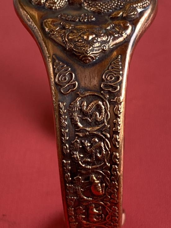 เคาะเดียวแดง กำไล องค์พ่อจตุคาม-รามเทพ รุ่นมงคลจักรวาล เนื้อสำริด เลข 931 |