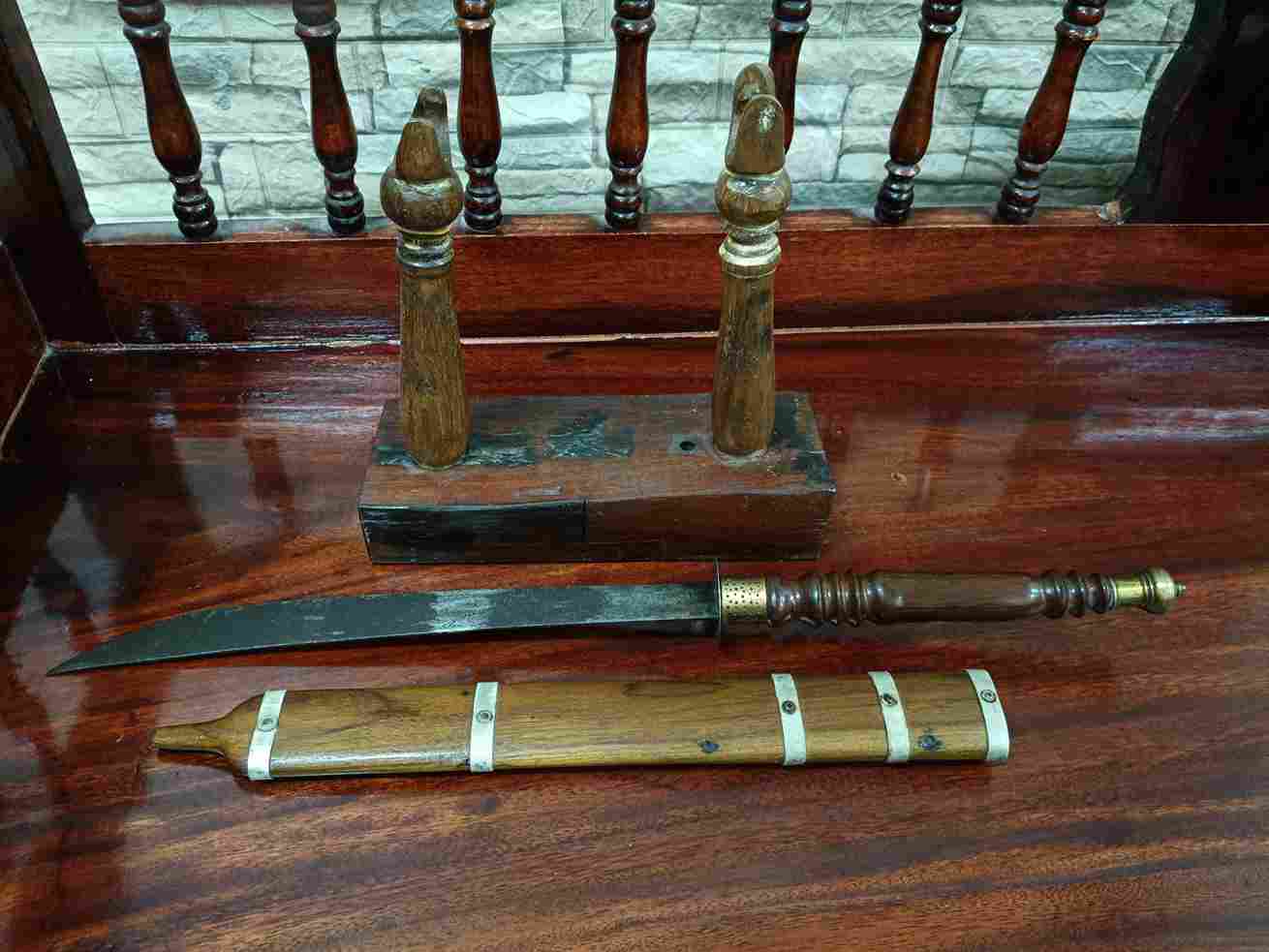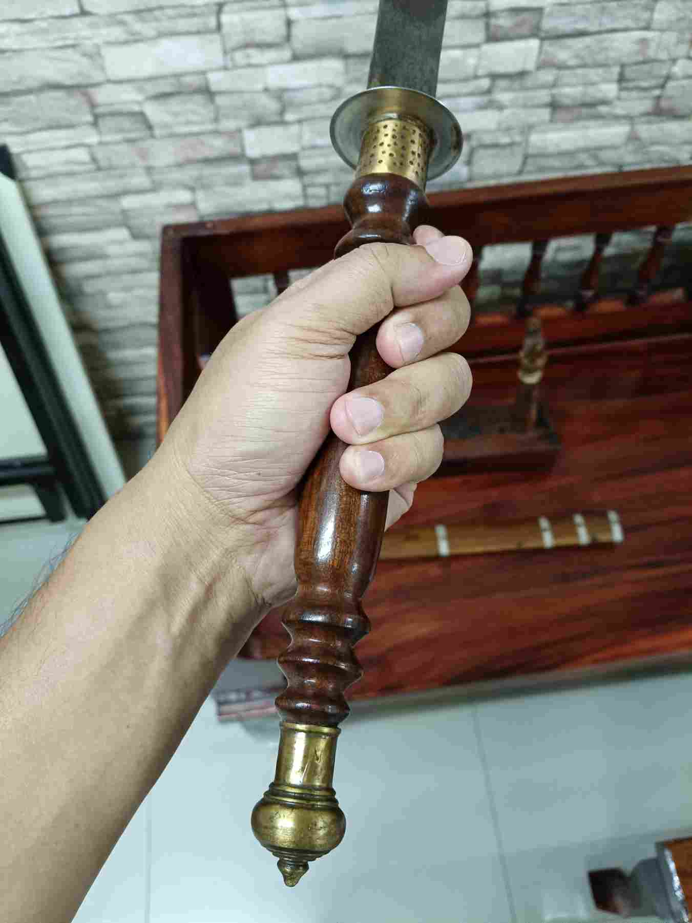 ดาบเก่าเก็บ ยาวรวม27" จากเมืองสุพรรณบุรี พร้อมฐานไม้ดั้งเดิม ปลายด้ามทองเหลือง สวยงาม