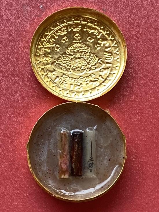 เคาะเดียวแดง สีผึ้งพระราหู รุ่น มงคลจักรวาล เนื้อ โลหะชุบทองลงยาสีดำขอบสีแดง ขนาด5ซม |