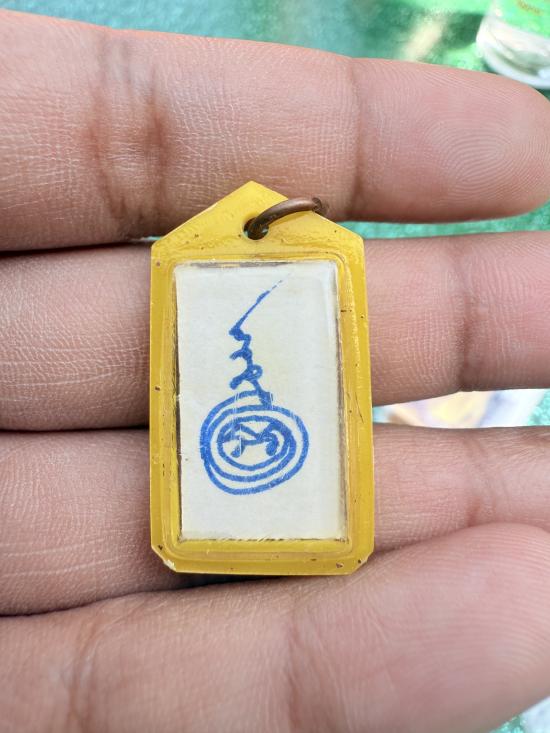 รูปถ่ายฉลองสมณศักดิ์ หลวงปู่ทิม วัดละหารไร่ ออกวัดป่าประดู่ หลังจาร ยันต์อะ ปี 2508 หลวงปู่ทิมปลุกเสก ภาพขาวดำ กระดาษหนังไก่ จัดสร้างน้อย
