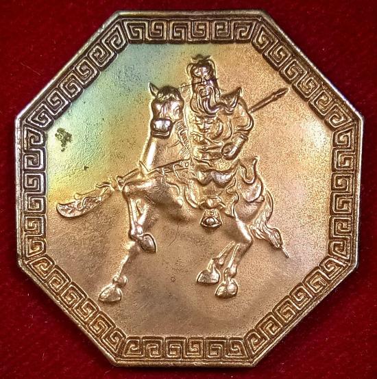 เหรียญ แปดเหลี่ยมเจ้าพ่อกวนอู วัดมังกรกมลาวาส(วัดเล่งเนยยี่) ร่วมกับ มูลนิธิเมาไม่ขับ.....กะไหล่ทอง |