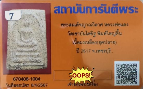 พระสมเด็จญาณวิลาศ หลวงพ่อแดง วัด: วัดเขาบันไดอิฐ พิมพ์ใหญ่ตื้น เนื้อ: เนื้อผงเหลือง (ยุคปลาย) ปีที่สร้าง: ปี 2517 จ.เพชรบุรี