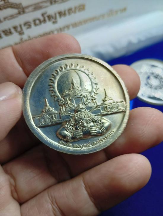 เหรียญสถาปนาวิหารฯ องค์พ่อจตุคามรามเทพ นราธิวาส เนื้ออัลปาก้า เหรียญในกล่องกรรมการ