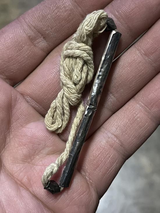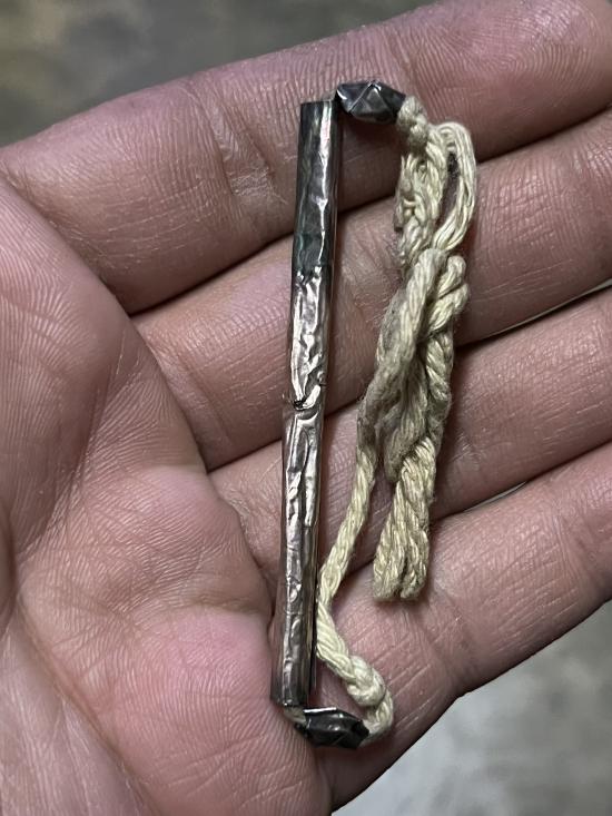 ชื่อพระเครื่อง ตะกรุดเนื้อเงินแท้ พร้อมลูกคั่น2ลูกเนื้อเงิน ตะกรุดที่เป็นเนื้อคฝเงินค่อนข้างพบเจอน้อยครับ เชือกสายสิญน์เดิมๆ เก่า ไม่ทราบสำนัก