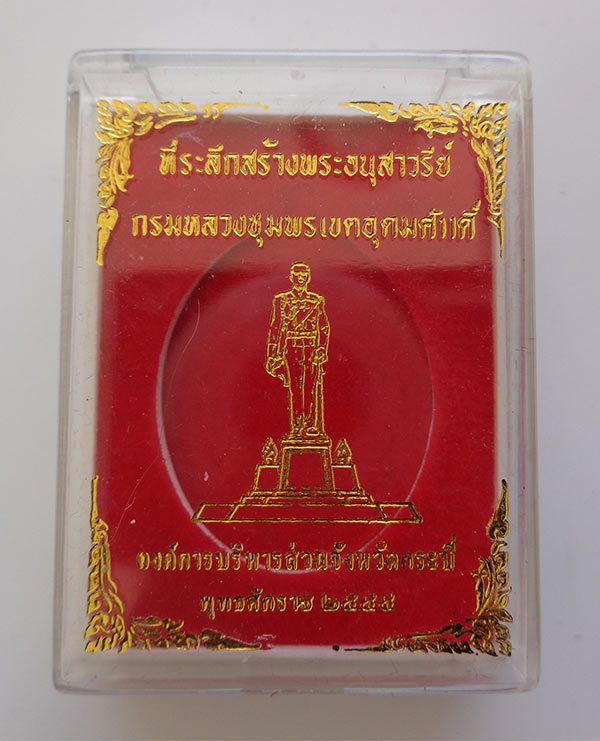 กรมหลวงชุมพรฯ รุ่น สร้างอนุสาวรีย์ฯ รูปหล่อลอยองค์ เหรียญเนื้อทองฝาบาตร หลังยันต์หลวงปู่ศุข หมายเลข 1475 (เหรียญบรรจุกรุและแจกสมนาคุณบางส่วน ไม่มีจำหน่ายในรายการจอง)