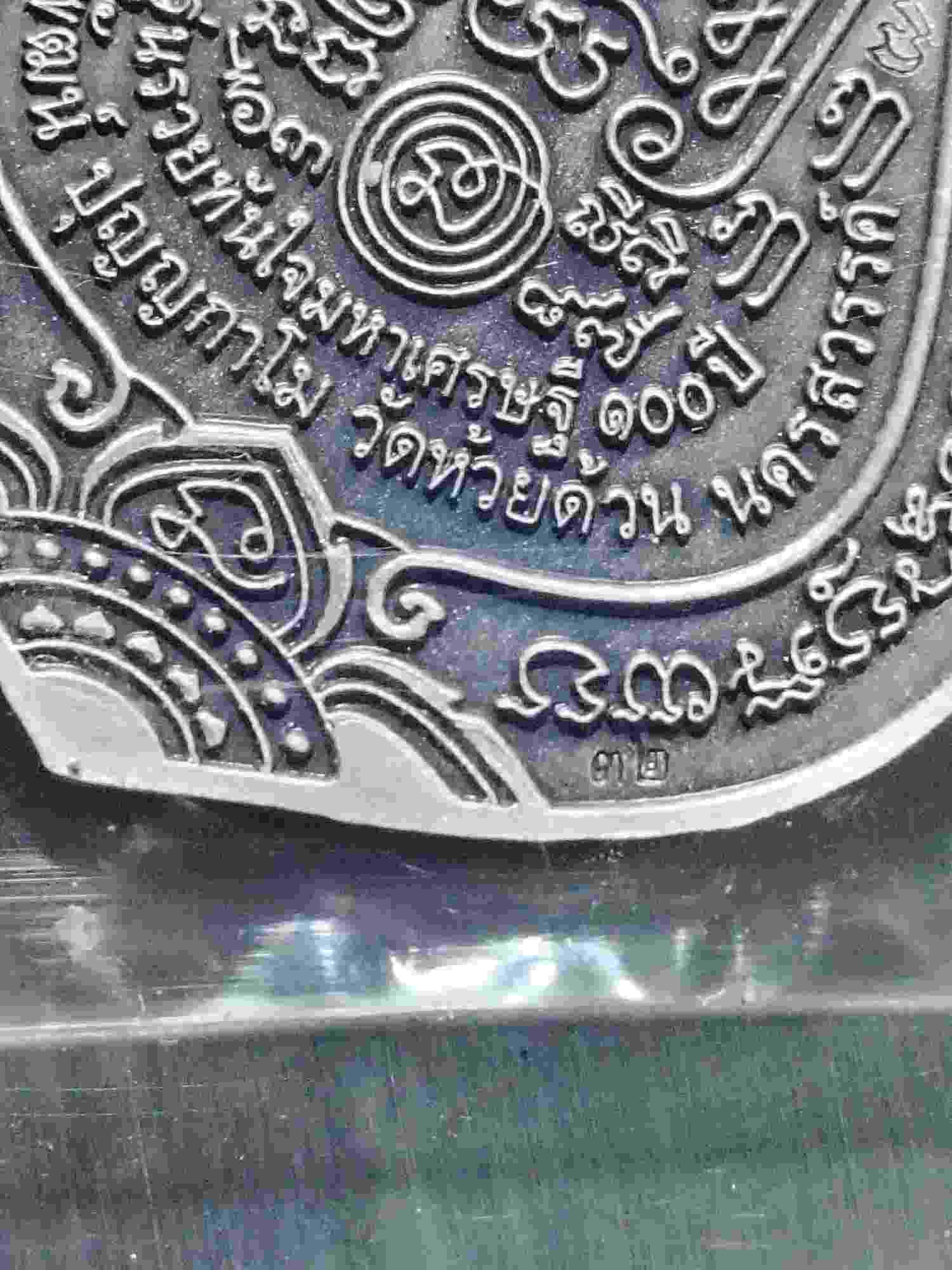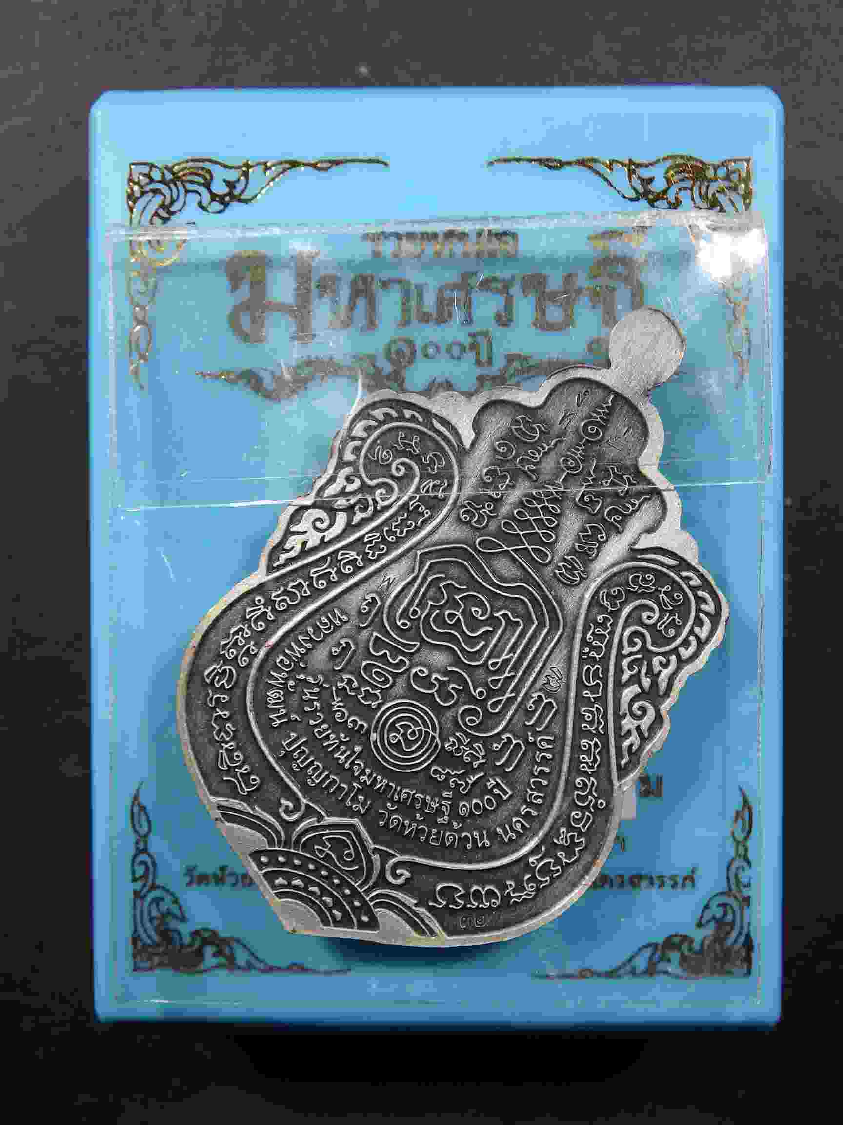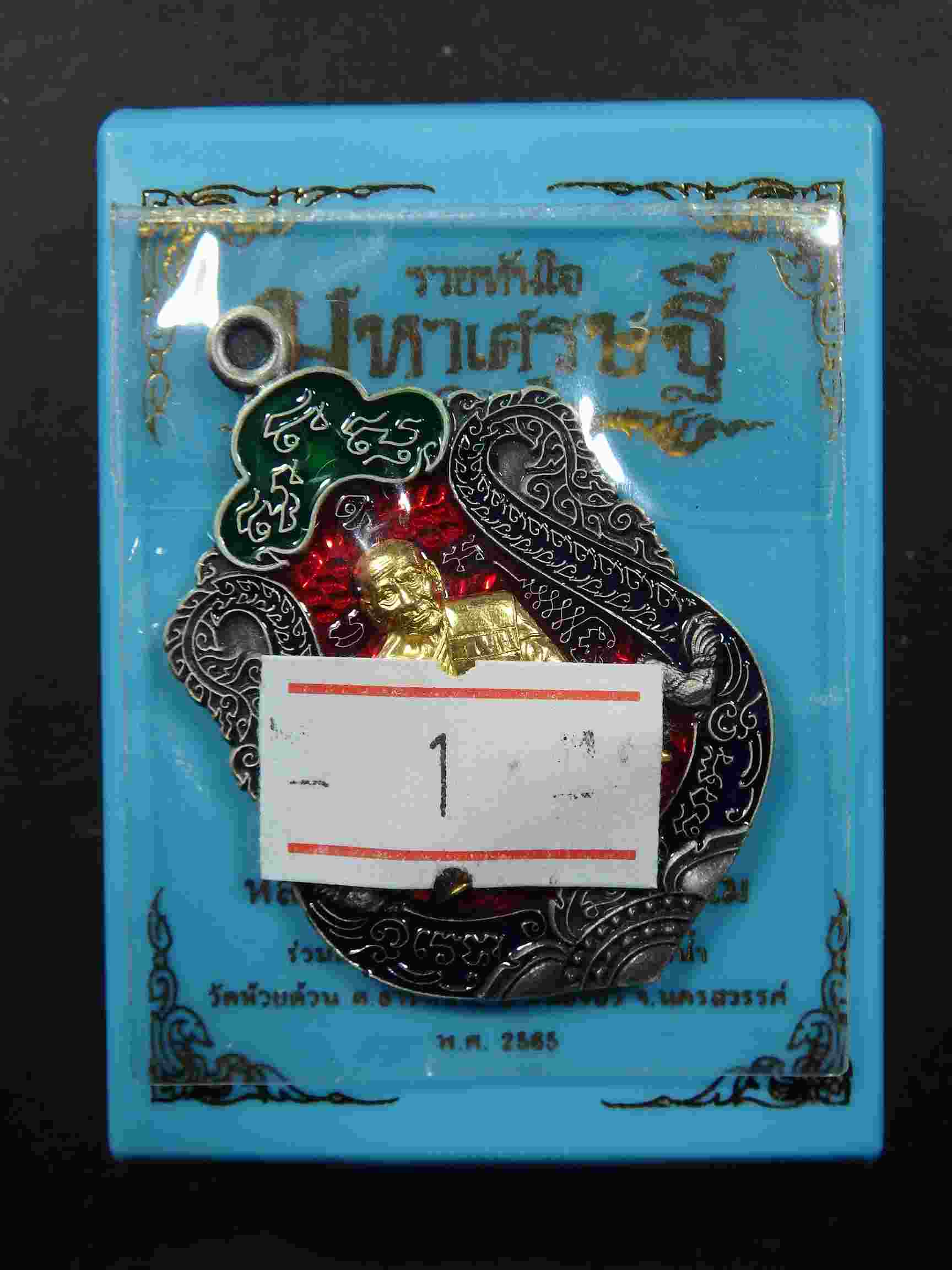 เหรียญหลวงพ่อพัฒน์ วัดห้วยด้วน จ.นครสวรรค์ รุ่น รวยทันใจ มหาเศรษฐี ๑๐๐ ปีเนื้อเงินซาตินหน้ากากทองคำลงยาแดง เลขโค๊ตนัมเบอร์ ๓๒ ซีนเดิม ๆ พร้อมกล่อง