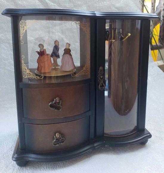 ***วัดใจ***กล่องดนตรีไม้สไตล์วินเทจมีตุ๊กตาเซรามิกหมุนได้ เป็นกล่องเก็บเครื่องประดับ ผลิตโดยบริษัทญี่ปุ่นชื่อ Sankyo