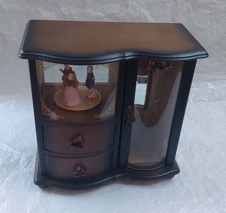 กล่องดนตรีไม้สไตล์วินเทจ เป็นกล่องเก็บเครื่องประดับ ผลิตโดยบริษัทญี่ปุ่นชื่อ Sankyo