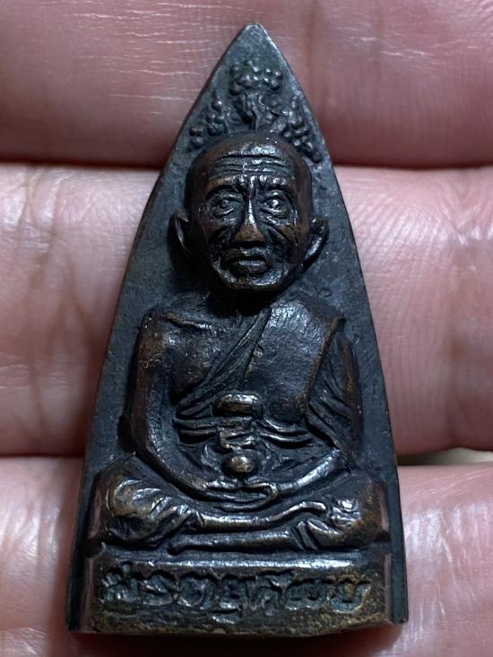 หลวงปู่ทวดปั้ม พิมพ์เตารีด-ปรกโพธิ์ หลังหนังสือ ก้นกลึง อุดกริ่ง (นิยมที่สุด) เนื้อทองเหลืองรมดำ รุ่นแรก วัดพะโค้ะ จ.สงขลา ปี 2506