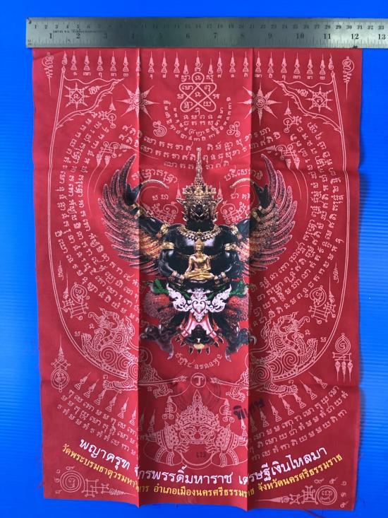 ผ้ายันต์ พญาครุฑ รุ่น เศรษฐีเงินไหลมา วัดพระศรีมหาธาตุวรมหาวิหาร จ.นครศรีธรรมราช สีแดง ขนาด A3 ขนาด 11.5 นิ้ว x 16.5 นิ้ว |