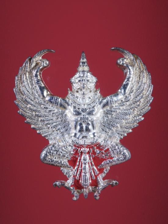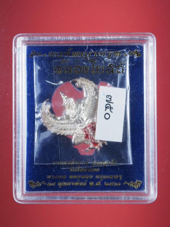 พญาครุฑ รุ่น ฉลองโบสถ์ หลวงพ่อวราห์ วัดโพธิทอง พิมพ์ใหญ่ เนื้อเงิน ปี 2561 เลข 570 หลวงพ่อเจิมจารให้แล้วครับ