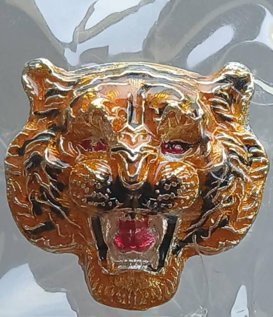 เคาะเดียว..หน้าพยัคฆ์ เนื้อโลหะชุบเงินลงยา หลวงปู่ศิลา ออกวัดโพธิ์ศรีสะอาด กล่องเดิมลงยา