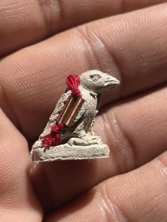 หลวงพ่อชำนาญ วัดชินฯ รุ่น อายุวัฒนมงคล๕๕ รายการ 20 นกสาริกา ฝังตะกรุดสาริกาคู่ เนื้อทองแดง