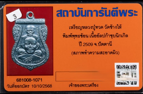 เหรียญหลวงปู่ทวด วัดช้างให้ พิมพ์พุทธซ้อน เนื้ออัลปาก้าซุปนิกเกิล ปี 2509