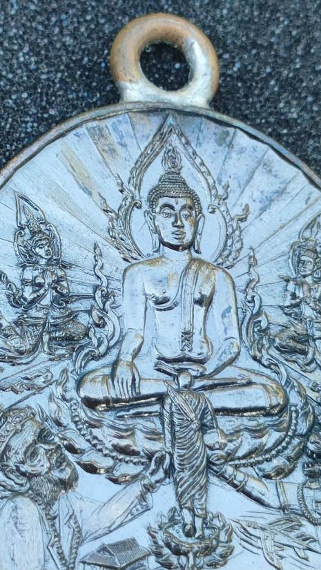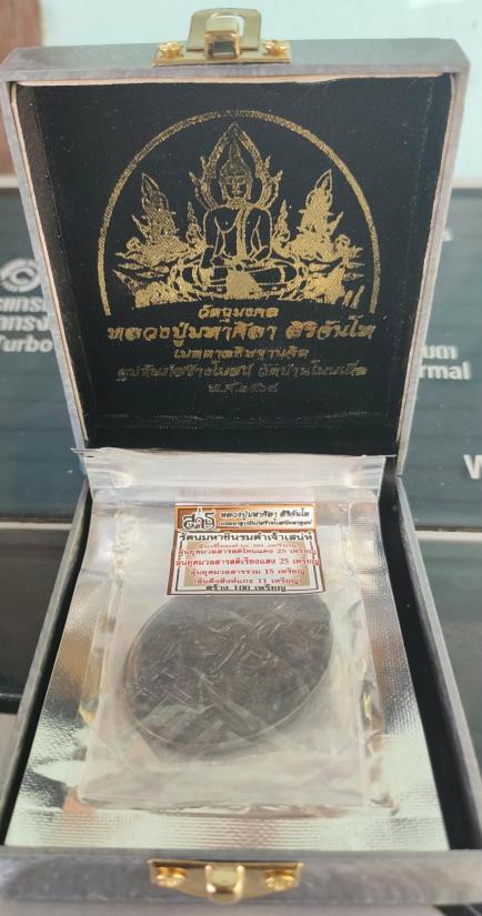 เหรียญพุทธศิลป์ รุ่น"สาธุ" หลวงปู่ศิลา สิริจันโท วัดโพธิ์ศรีสะอาด(อุปถัมภ์สร้างโบสถ์มหาอุตม์ วัดบ้านโนนเดื่อ) จ.ร้อยเอ็ด เนื้อรัตนมหาชินรมดำเจ้าเสน่ห์ พิเศษห่วงเชื่อมนวะ เลข ๗๗ พร้อมกล่อง สร้าง๑๐๐เหรียญ...เป็นวัดที่ลป.ศิลาเคยจำพรรษา |