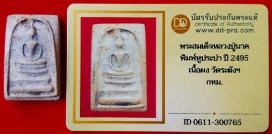 พระสมเด็จหลวงปู่นาค พิมพ์หูประบ่า ปี 2495 + บัตรรับรอง