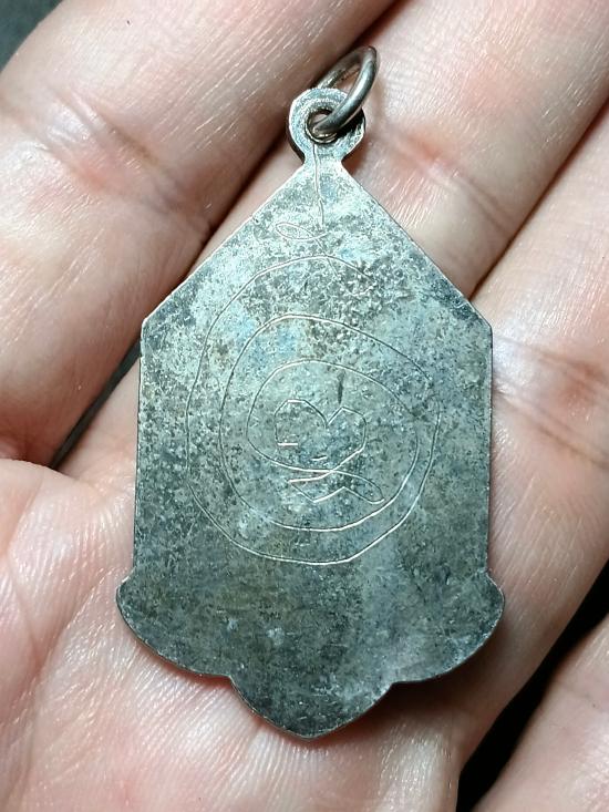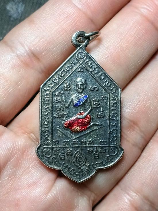 เหรียญนางกวัก หลวงพ่อสมชาย วัดโพรงอากาศ ((รุ่นแรก )) เนื้ออัลปาก้าชุบนิเกิ้ลลงยา ปี 2531 หลังจารมือ |