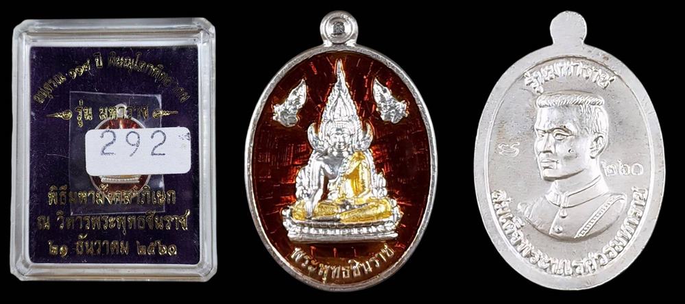 เหรียญเม็ดแตง พระพุทธชินราชหลังพระนเรศวร รุ่นมหาราช 118 ปี เนื้อเงินลงยา(สีแดง) หมายเลข 292 สภาพสวยมากๆ พร้อมกล่องครับ