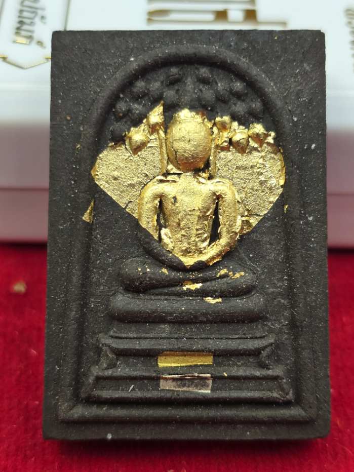 พระผงน้ำมันสมเด็จปรกโพธิ์ รุ่นสร้างโบสถ์ เนื้อผงใบลาน ปิดทอง ฝังตะกุดทองคํา+ตะกรุดเงิน เลข25 พุทธภิเษกที่วัดประดู่ฉิมพลี จัดสร้างโดยวัดบ้านอ้อ |