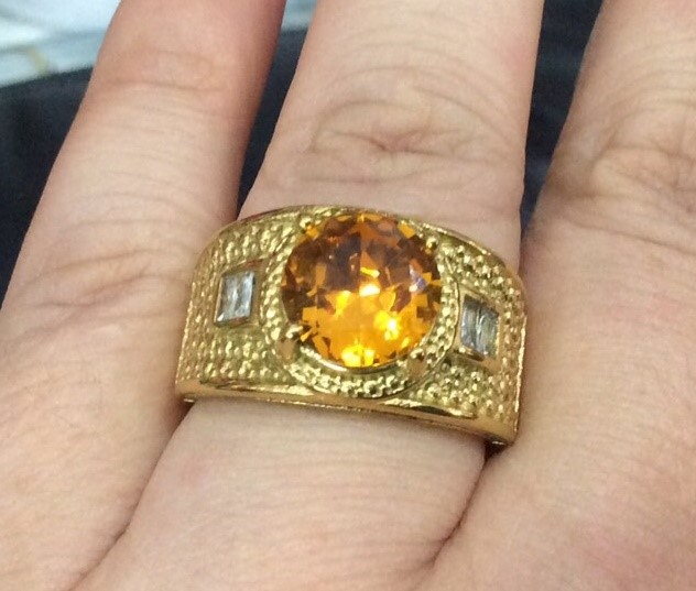 เทขาดทุน++เทปีใหม่++แหวนทองชุบยิงเลเซอร์ แหวนมหามงคลเสริมบารมี หัวพลอยบุษราคัม สวยมาก สวยๆ