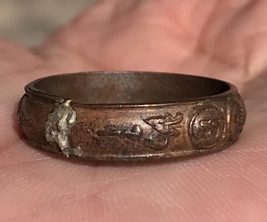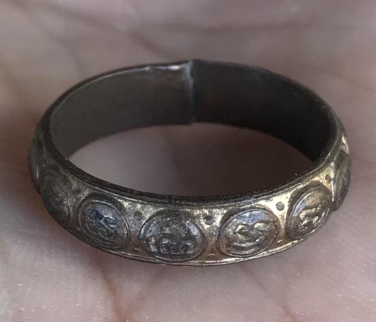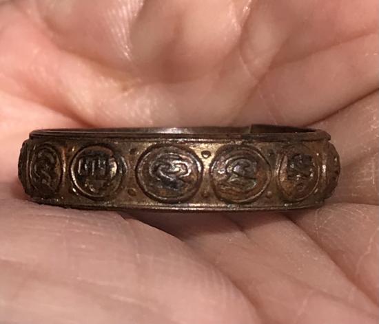 แหวนมงคลเก้า เนื้อทองแดง ไม่ทราบที่ สวยครับ