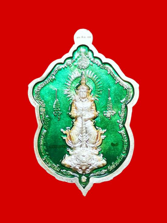 ***เนื้อเงินลงยาสีเขียว หนัก 17.9 กรัม ชุดกรรมการ*** เหรียญเสมาหลวงพ่อพัฒน์ปุญญกาโม หลังท้าวเวสสุวรรณ เนื้อเงินลงยาสีลายธงชาติ ชุดกรรมการ หมายเลขชุด ๖๔ "รุ่น เศรษฐีสมปรารถนา" พิธีพุทธาภิเษก ณ วัดห้วย