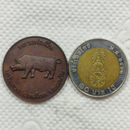 เหรียญหมูเสริมดวงอุดมโชคปลอดภัยหลวงพ่อเปิ่น วัดบางพระ ปี2541 จำนวน 5 องค์ มีกล่อง แดงเคาะแรก |