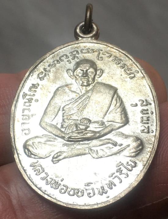 เหรียญหลวงพ่ออบ วัดถ้ำแก้ว รุ่น 3 พิมพ์ไม่มีดอกจัน เนื้อเงิน ปี 2517