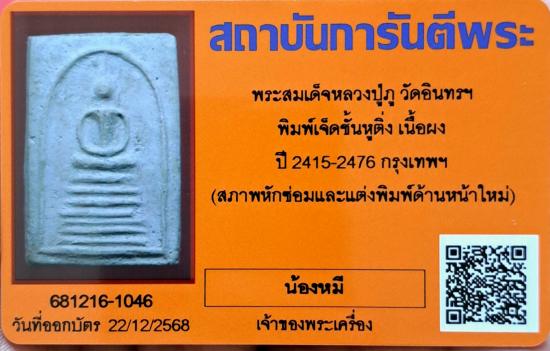 ชื่อพระเครื่อง วัดใจ 200 บาท สมเด็จหลวงปู่ภูพิมพ์ 7 ชั้นหูติ่งพระมีหักซ่อมพร้อมบัตรรับรอง