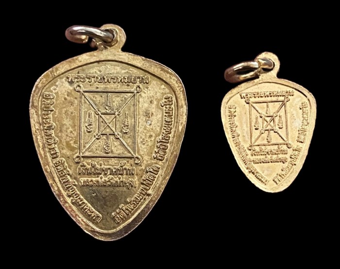 เหรียญเงินไม่ขาดบ้าน เหรียญเศรษฐี ด้านหน้าหลวงพ่อฤาษีลิงดำ วัดท่าซุง จ.อุทัยธานี ด้านหลังยันต์ พิมพ์ใหญ่ และ พิมพ์เล็ก |