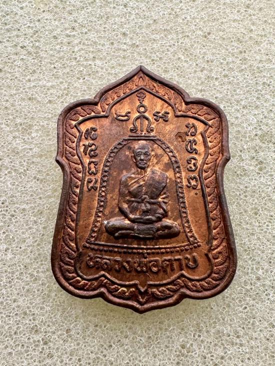 เหรียญโล่ห์ หลวงพ่อตาบ วัดมะขามเรียง รุ่นสร้างเจดีย์ ตอกโค๊ต เนื้อทองแดงผิวไฟ ปี32 |