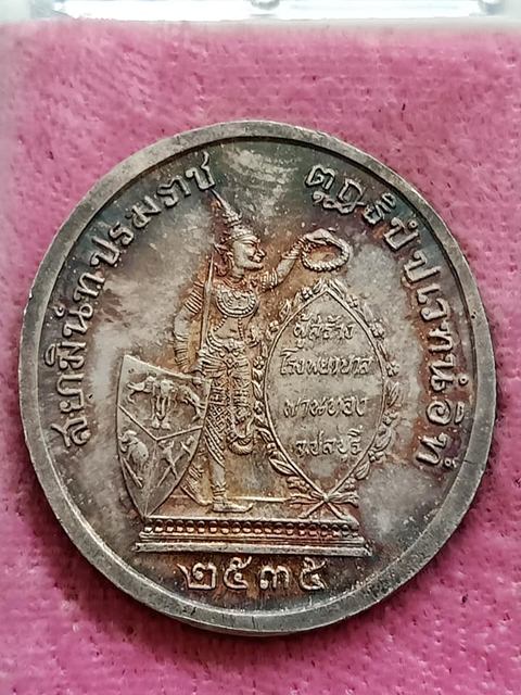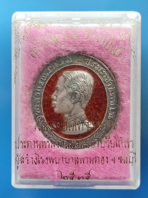 เหรียญรัชกาลที่ 5 ทรงยินดี สร้างโรงพยาบาลพานทอง จังหวัดชลบุรี เนื้อเงินลงยา ปี 35 ท่านเจ้าคุณธงชัย วัดไตรมิตร จัดสร้าง เคาะเดียวแดงครับ