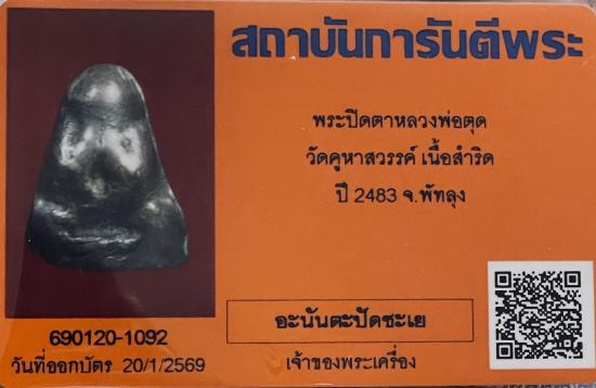 !!!วัดใจ!!! พระปิดตาหลวงพ่อตุด วัดคูหาสวรรค์ เนื้อสำริด ปี 2483 จ.พัทลุง พร้อมบัตรรับรอง