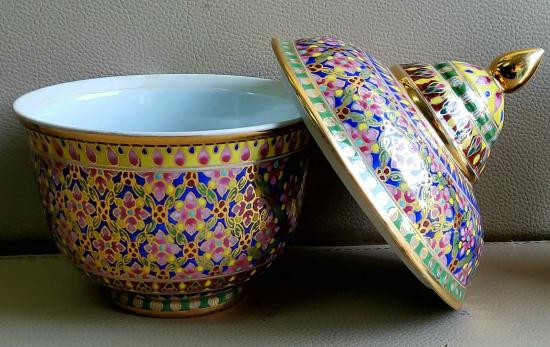 วัดใจ เคาะเดียว 200 โถ เบญจรงค์เก่า วาดลายน้ำทอง ชุดแก้วเบญจรงค์เก่า สวยงานละเอียด |