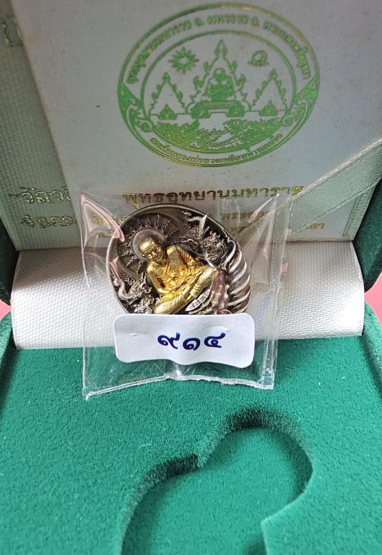 เหรียญหลวงปู่ทวดรุ่น "อภิเมตตา มหาโพธิสัตว์" พิมพ์จิ๋ว เจริญลาภ เจริญยศ เนื้ออัลปาก้า องค์กะไหล่ทองคำ หมายเลข ๙๑๔ ซีลเดิมๆ พร้อมกล่องเดิม