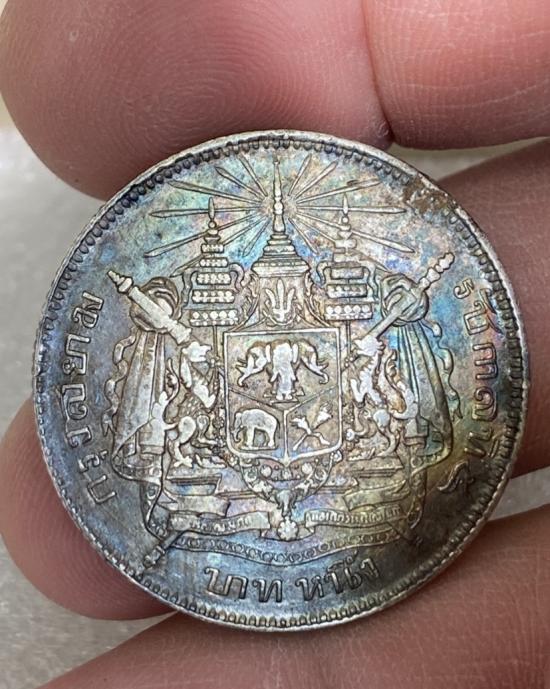 รัชกาลที่ 5 กรุงสยาม บาทหนึ่ง ไม่มี รศ.เนื้อเงิน |
