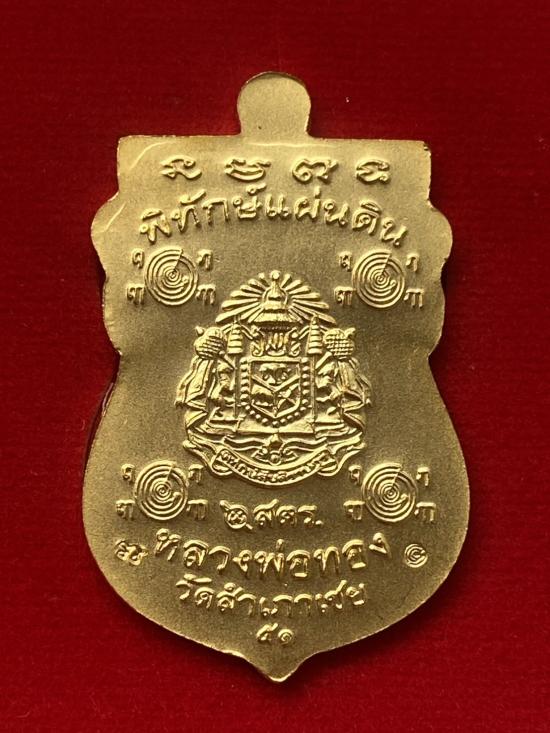 เคาะเดียวแดง หลวงปู่ทวด อาจารย์ทอง รุ่นพิทักษ์แผ่นดิน เนื้อชุบทอง หัวขีดกรรมการ |
