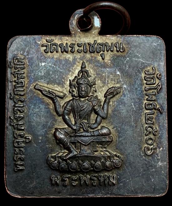 เหรียญหลวงปู่ทวด หลังพระพรหม (นิยมสุด) วัดเชตุพนฯ (วัดโพธิ์) กรุงเทพฯ ปี 2506 พิมพ์สี่เหลี่ยม