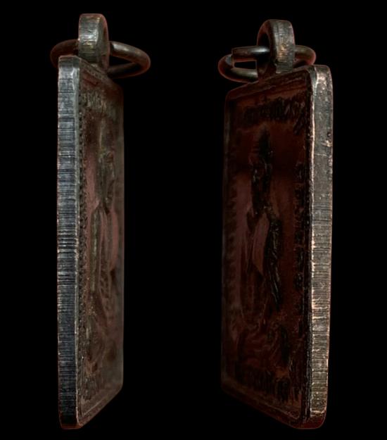 เหรียญหลวงปู่ทวด หลังพระพรหม (นิยมสุด) วัดเชตุพนฯ (วัดโพธิ์) กรุงเทพฯ ปี 2506 พิมพ์สี่เหลี่ยม จัดสร้างโดยพระครูสังฆรักษ์(สงัด) หลวงปูทิม วัดช้างให้ ร่วมปลุกเสก เนื้อทองแดงรมดำ พระสวยผิวเดิม รุ้งๆปรอทท่วม